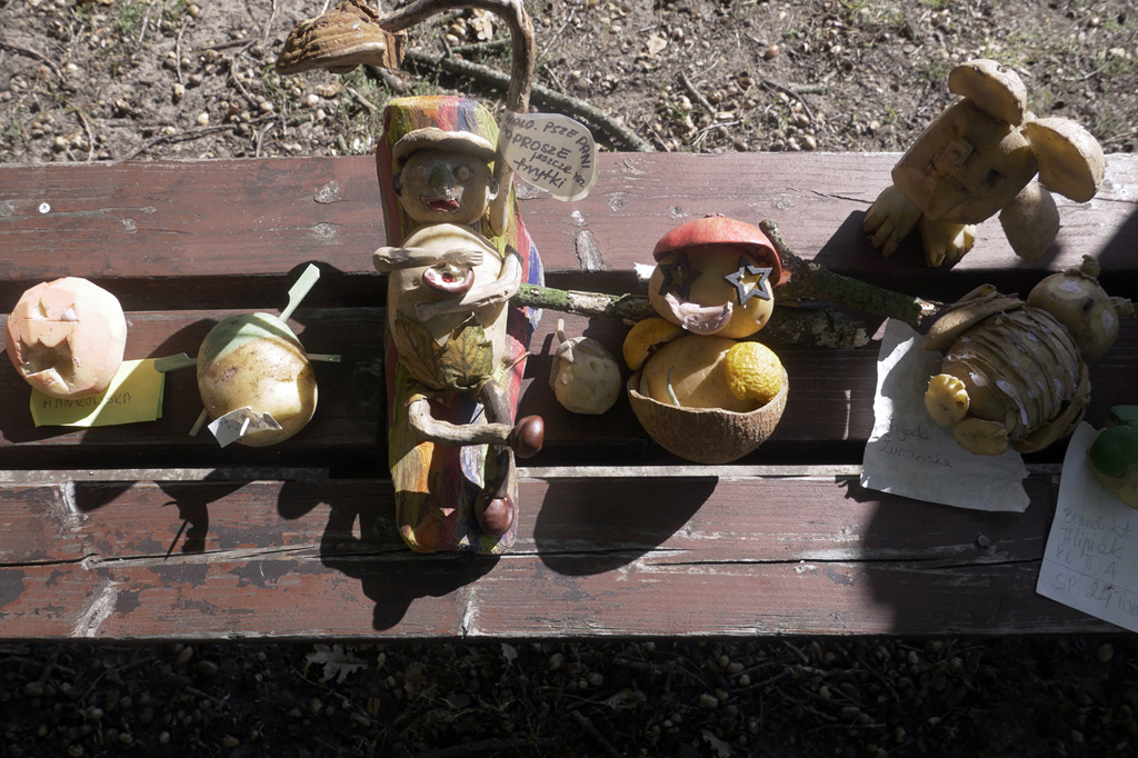 Podziwianie rzeźb z ziemniaków. |