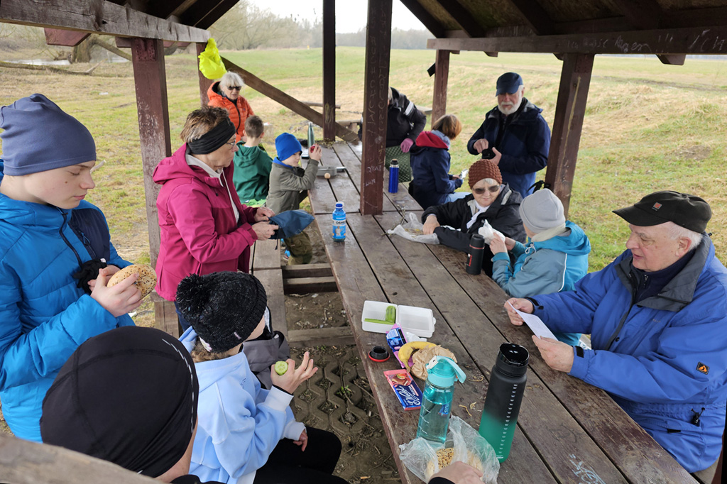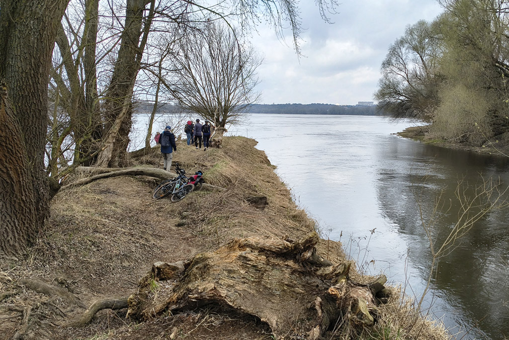 Uczestnicy przy ujściu Drwęcy do Wisły. |