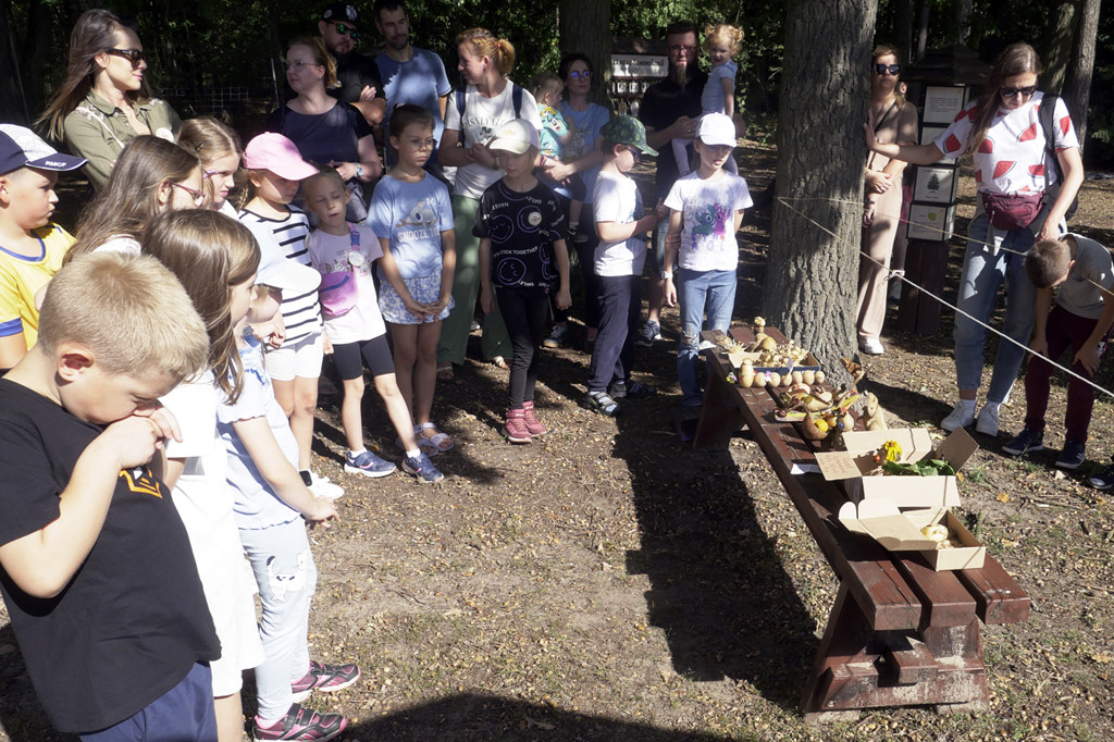 Podziwianie rzeźb z ziemniaków. |