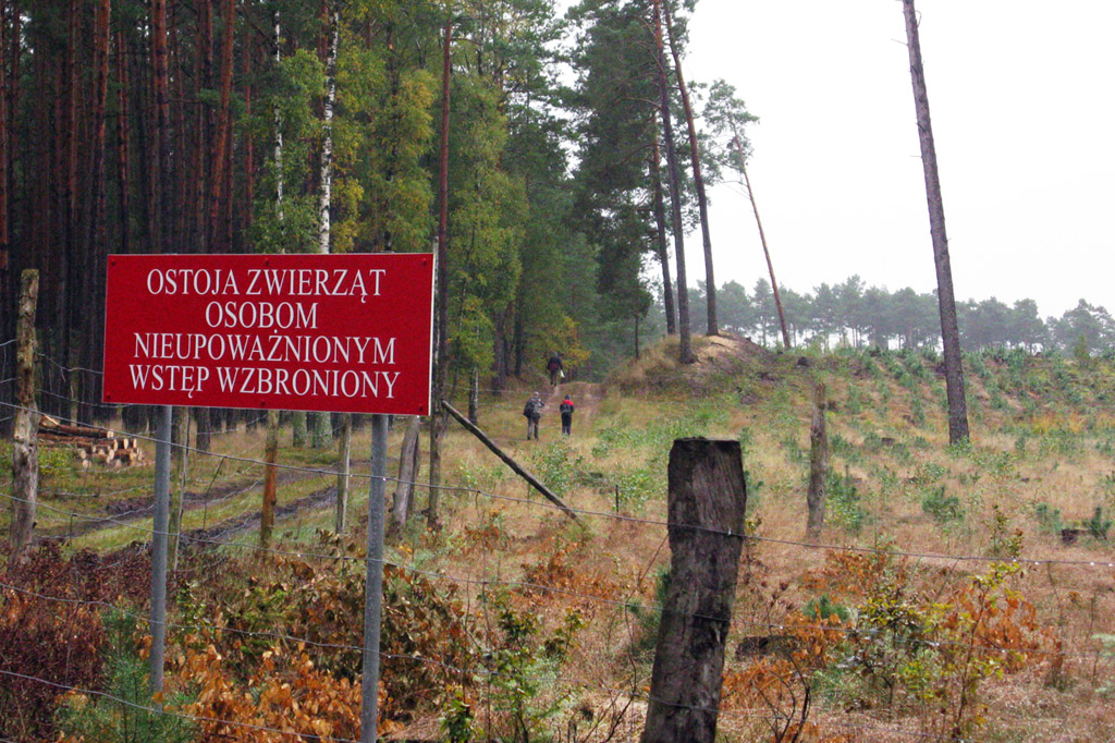 Przemarsz grupy drogą w Puszczy Bydgoskiej. |